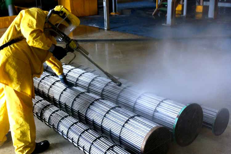 Es la operación de propulsar a alta presión partículas con fuerza abrasiva, contra una superficie a alta presión para alisar la superficie o la rugosidad de la superficie o eliminar materiales contaminantes de la superficie.
