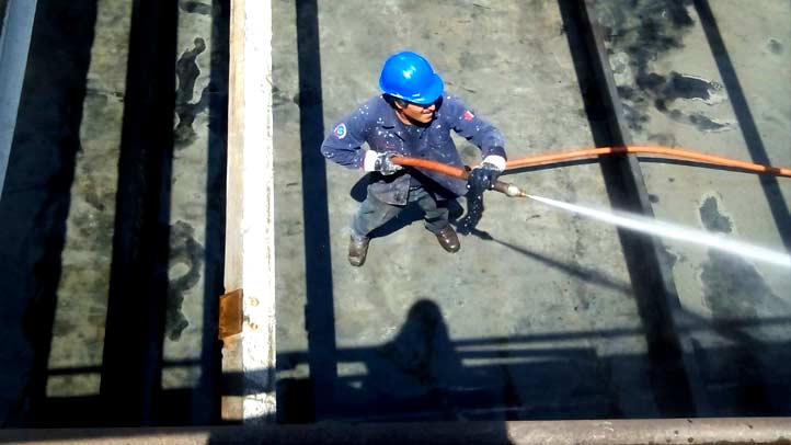 Consiste en la aplicación de un chorro de agua a alta velocidad sobre las superficies para separar los elementos ensuciantes del metal base.Se le conoce también como Water-blast, Water-jet, Hidro-laser, etc.